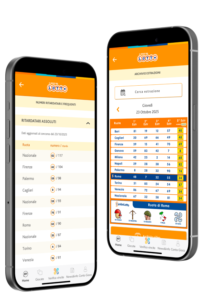 Giocare al Lotto è possibile effettuando il download dell’applicazione My Lotteries per smartphone iOS e Android. I giocatori possono non solo compilare e giocare la propria schedina direttamente tramite app, ma anche accedere all’archivio delle estrazioni degli ultimi 12 mesi e alla sezione dedicata alla verifica delle vincite.