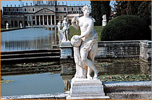 Villa Pisani è un maestoso complesso di vari edifici unificati dal grande parco, originariamente progettato da Gerolamo Frigimelica attorno al 1720, ma attuato da Francesco Maria Preti, che adottò uno stile più essenziale di quello originario. La facciata principale, di fronte al Brenta, è elegantemente decorata e attraversata da un lungo balcone. Nell’ampio edificio rettangolare, le stanze del primo piano, tutte decorate, sono disposte intorno alla sala da ballo, fulcro del palazzo. L'ampio soffitto fu decorato da Tiepolo che vi raffigurò la "Gloria della famiglia Pisani". L'opera, eseguita tra il 1760 e il 1762, è l’ultimo lavoro realizzato dall'artista in Italia. Più sobria appare invece la facciata rivolta verso il giardino, sulla quale si ammira la statua di Almorò Pisani, committente della villa, in abito da "Capitan da Mar". Il giardino si estende in una golena del Brenta, su circa dieci ettari, ed è delineato da un muro di cinta con portali e finestre. Nel 1728, quando il giardino viene progettato da Frigimelica, si presenta come un bell’esempio di giardino all’italiana, che conserva un carattere regionale. Durante il periodo della dominazione francese (1807-1814) vengono apportate sostanziali modifiche, ma è sotto quella austriaca (1814-1866), che il giardino raggiunse il periodo del suo massimo splendore, grazie all’interessamento dell’imperatore Francesco I.
